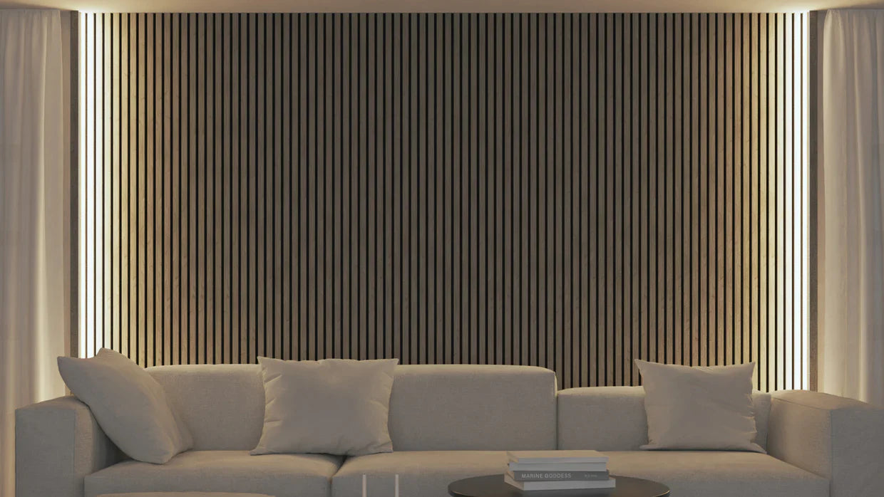 Geef je akoestische wandpanelen een stijlvolle en functionele afwerking met de Top Afwerklat met geïntegreerde LED-verlichting. Deze afdeklijst is speciaal ontworpen om bovenop de panelen te plaatsen en zorgt voor een strakke overgang tussen wand en plafond.