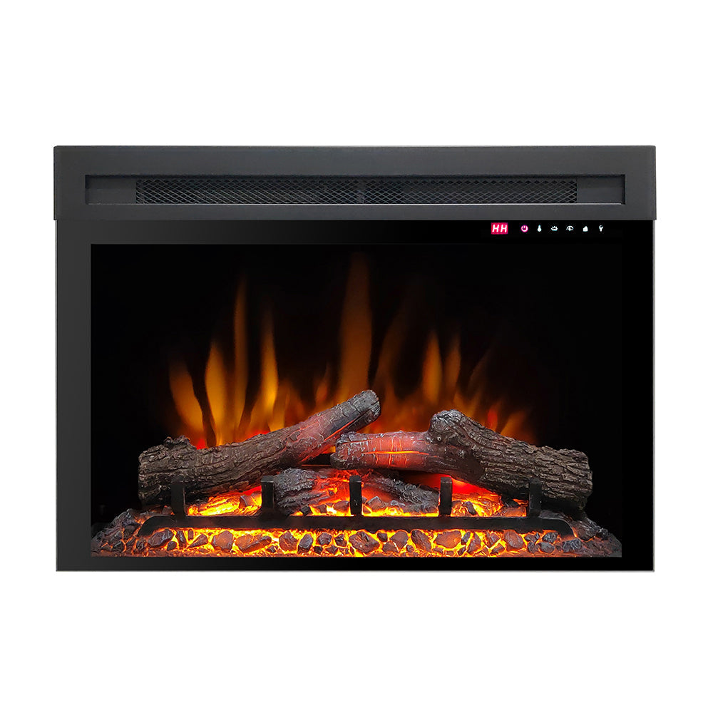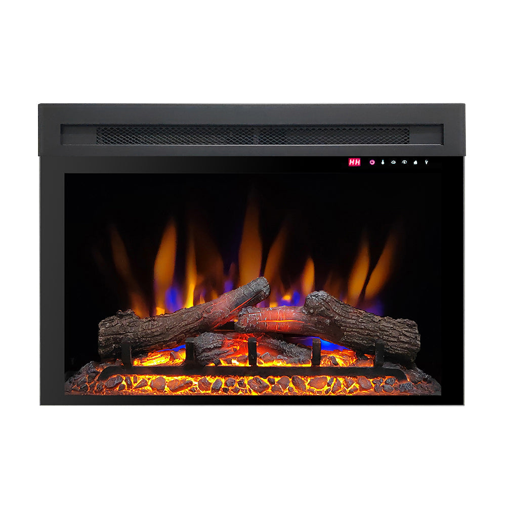 De EVIQ Amber is een moderne elektrische inzethaard die gebruikmaakt van het realistische vuureffect. Dankzij het strakke, frameloze glaspaneel en het stijlvolle ontwerp past deze haard perfect in zowel klassieke als moderne interieurs. De vlammen kunt u naar wens sneller of langzamer laten bewegen en de digitale thermostaat maakt het eenvoudig om een aangename temperatuur in te stellen. Het unieke gloeibed kan zelfs rood of blauw oplichten, zo stemt u de sfeer perfect af op uw ruimte.